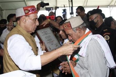 Raksha Mantri Rajnath Singh, , felicitated the families of the brave soldiers of the Armed Forces, hailing from Himachal Pradesh, who laid down their lives in the service of the Nation. The felicitation ceremony was organised at Badoli in Kangra district of the state.