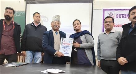 (MOREPIC2)(SUBHEAD)Dr.Sunita Sharma officiating Principal NINE PGIMER conveyedthat we all are prone to these Crimes and it is very important to remain updated to prevent Cyber Frauds especially with youth and senior citizens.She thanked Citizens Awareness Group for organizing this program.
