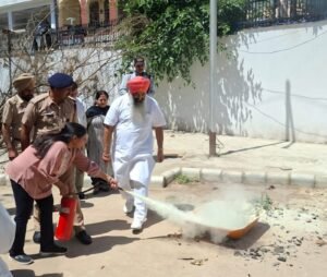 Sub Fire Officer Jasmit Singh urged all participants to take a pledge to make fire safety a habit, not an afterthought. He added that a few minutes of training today can save lives tomorrow. Mange Ram and Joginder Singh Leading Firemen demonstrated the use of Fire extinguishers with the assistance of Fireman Nitin.