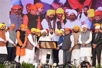 Punjab Chief Minister Bhagwant Singh Mann and National Convener of AAP Arvind Kejriwal on Sunday joined revered religious leaders across the globe to pay tributes to Sri Guru Tegh Bahadur ji in a ‘Sarb Dharam Sammelan’ to mark 350th martyrdom day of the ninth Guru.