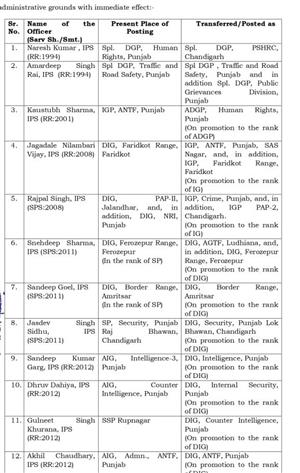 PUNJAB MAJOR RESHUFFLE IN POLICE ADMINISTRATION , 22 IPS TRANSFERRED