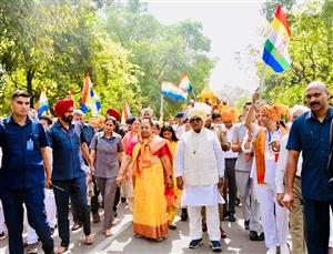 The procession, comprising around 200 devotees, moved forward with devotional fervor. Accompanied by melodious band performances, devotees danced joyfully as the beautifully decorated chariot carrying Bhagwan led the yatra. The procession reached Shri Digamber Jain Mandir, Sector 27 at 10:15 AM, where a Dharam Sabha was held along with cultural programs.