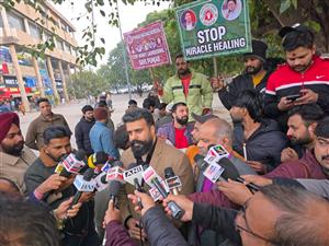 मिराकल हीलिंग बंद करो व पाखंडवाद मुर्दाबाद के नारों से गुंजायमान हो गया प्लाजा का माहौल