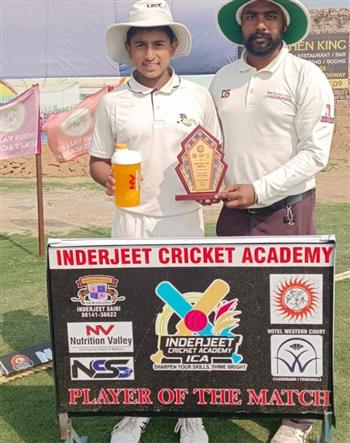 चैंपियंस क्रिकेट एकेडमी, खरड़ ने नागेश क्रिकेट एकेडमी, पीरमुछल्ला को 118 रनों से हराकर ट्राई सिटी इंदरजीत क्रिकेट ग्राउंड में आज खेले गए दूसरे लेट मंजू अरोड़ा मेमोरियल अंडर-14 क्रिकेट टूर्नामेंट के फाइनल में जगह बनाई। फाइनल मैच में चैंपियंस क्रिकेट एकेडमी, खरड़ का मुकाबला एच.के. क्रिकेट एकेडमी, लुधियाना से होगा।