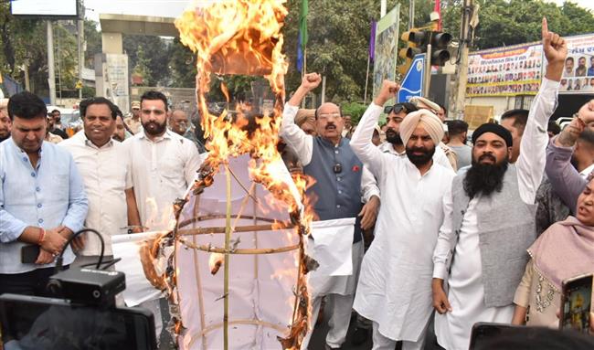 EFFIGY OF PUNJAB CONGRESS CHIEF BURNT IN JALANDHAR AS OUTRAGE GROWS OVER “DEROGATORY” STATEMENT