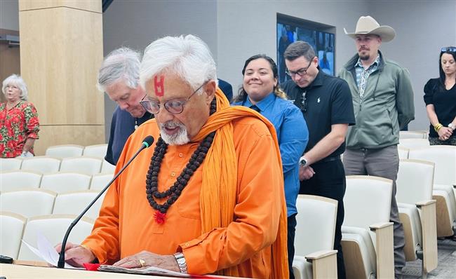 Distinguished Hindu statesman Rajan Zed delivered the invocation from ancient Sanskrit scriptures before the Corpus Christi City Council. After Sanskrit delivery, he then read the English interpretation of the prayers. Sanskrit is considered a sacred language in Hinduism and the root language of Indo-European languages.