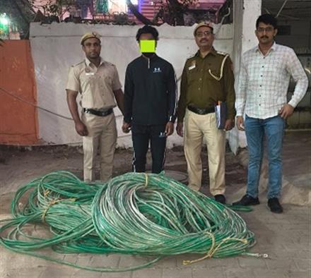 ONE OF THE ACCUSED PERSONS RANDHIR SINGH IS A HARDCORE CRIMINAL PREVIOUSLY INVOLVED IN A MURDER CASE OF LUDHIANA, PUNJAB AND THEFT OF ATM MACHINE AT UDAIPUR, RAJASTHAN, ACCUSED RANDHIR SINGH WAS WORKING AS CRANE OPERATOR AT THE CONSTRUCTION SITE WHILE OTHER ACCUSED WAS WORKING AS A LABOUR. ACCUSED RANDHIR SINGH WAS ARRESTED FROM HIS NATIVE VILLAGE IN AMRITSAR, COMPLETE STOLEN CABLE AROUND 1200 METERS RECOVERED.