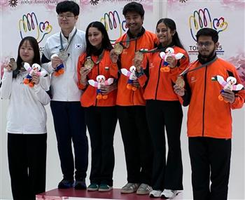 Indian shooters sealed another double podium at the 25th Summer Deaflympics in Tokyo winning both the gold and bronze medals in the 10m Air Rifle Mixed Team event. The pair of Dhanush Srikanth and Mahit Sandhu clinched the gold medal overcoming the South Korean pair Jeon Dain and Kim Woorim in the gold medal match while Mohammed Murtaza Vania and Komal Milind Waghmare added a bronze medal to their individual medals after getting the better of Ukrainian pair of Violeta Lykova and Oleksandr Kostyk.