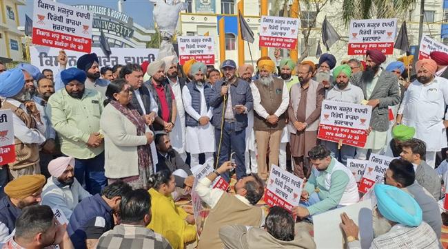 Addressing the media during the protest, AAP MLA Gurinder Singh Garry Birring said, “It is a very unfortunate matter that Punjab Governor Gulab Chand Kataria, instead of coming himself, sent Haryana Chief Minister Nayab Singh Saini to this programme. I want to ask the Governor whether Punjab does not have its own ministers or leaders.”