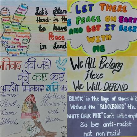 Muskan Gupta, Pragya Gupta and Jaismeen Kaur won the first, second and third prizes in poster making competition. In slogan writing competition Kanak, Bhumika and Simran Rawat won the first, second and third prizes. Students recited poems, gave speeches, presentations and presented skits highlighting the different aspects of Racism and discriminations occurring across the World. The response of the students was overwhelming for this event.