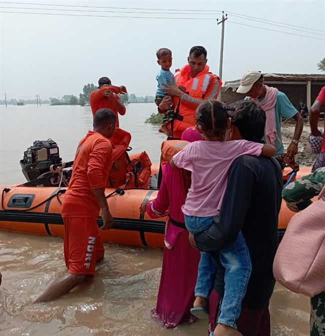 295 flood victims who were inundated in flood water in the Fazilka area along Indo-Pak border were rescued by a NDRF team of divers from Bathinda who used boats and at many places by swimming. Under the leadership of Inspector Kanhaiya Lal and Ashish Kumar, commander of the force team, 24 jawans also distributed food and water for drinking among the flood victims, doing commendable work in village Gatti Yaru.